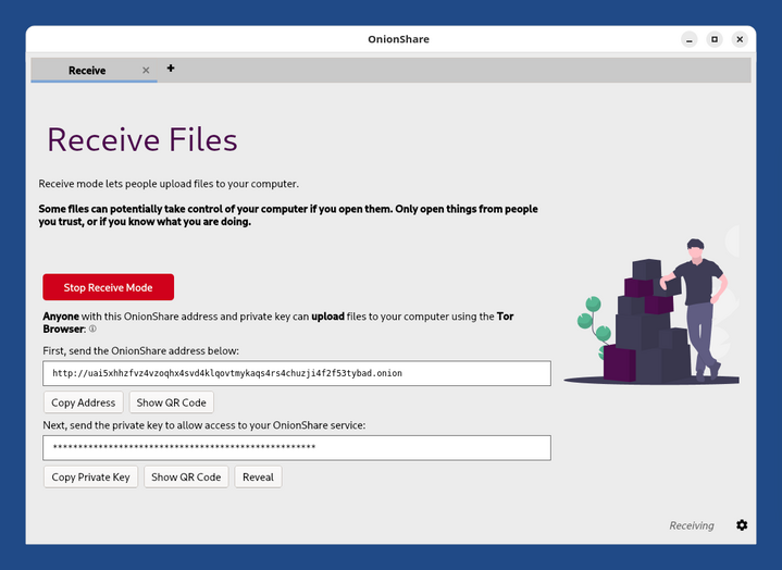 OnionShare ti consente di creare servizi sicuri, anonimi e monouso a cui altre persone possono collegarsi.